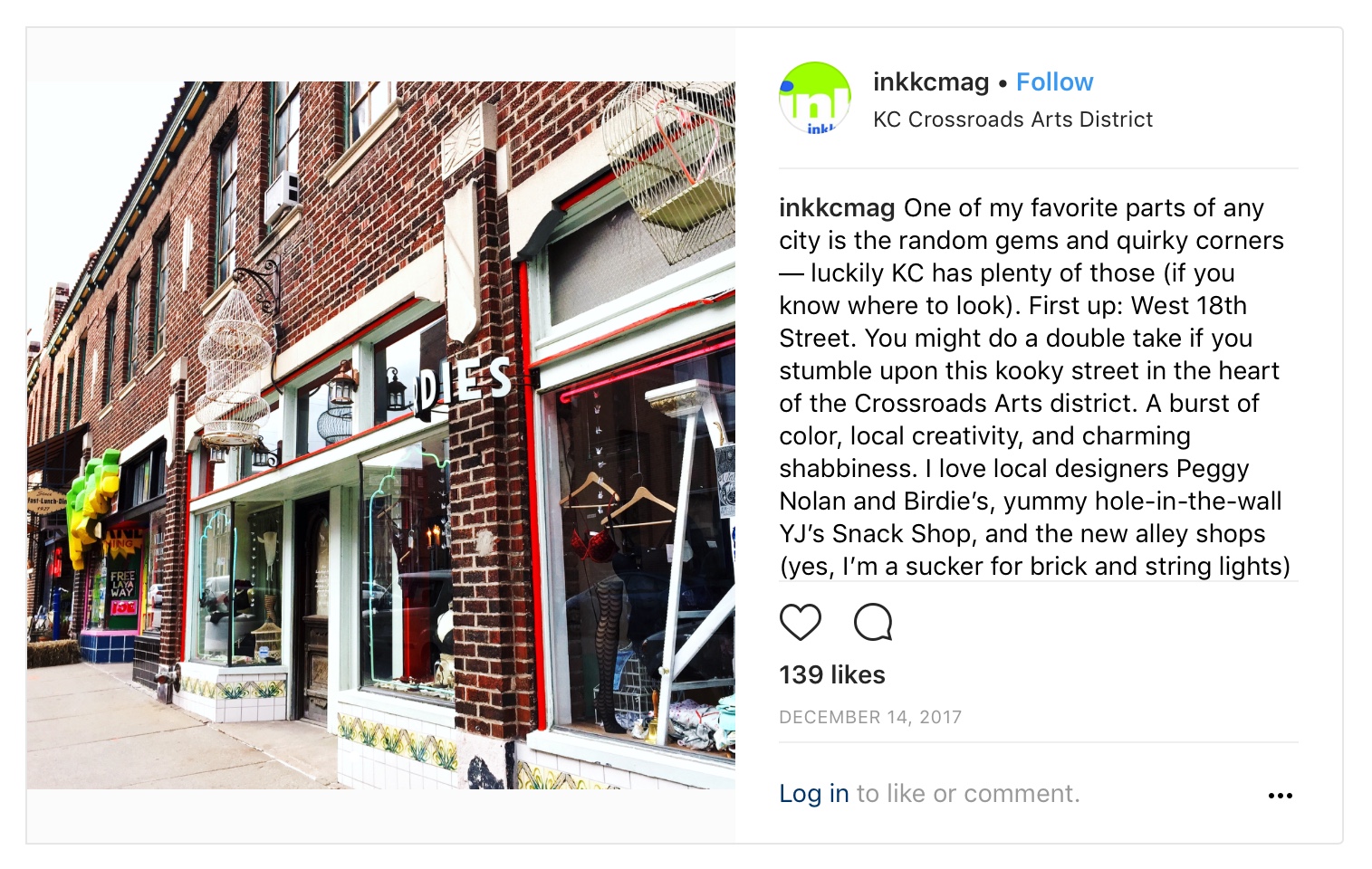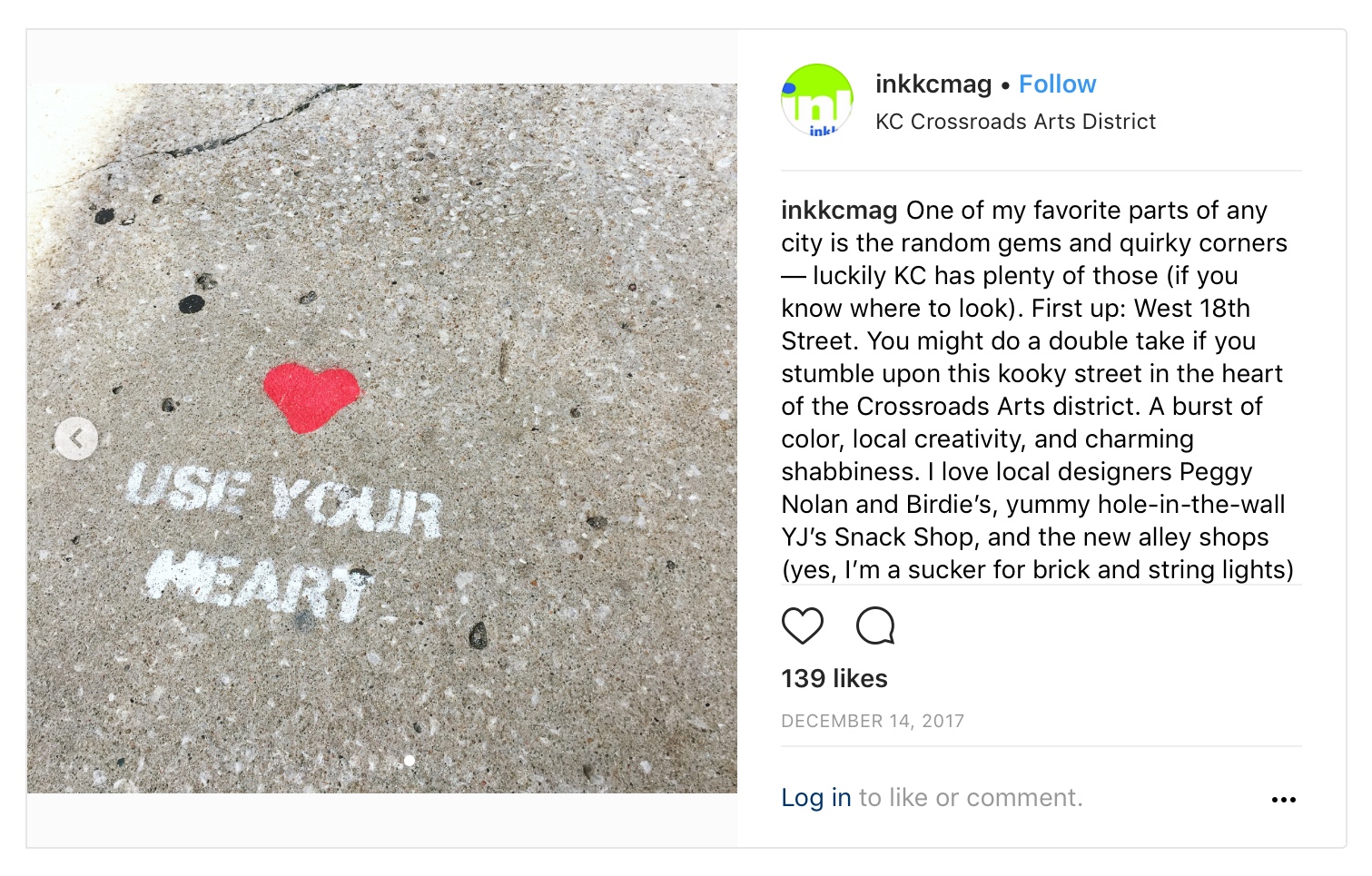 As part of their Instagram takeover feature, I was chosen to go behind the lens for local arts and culture magazine Ink KC. I took 11.9K Ink followers on a tour of my favorite Kansas City spots through photos and IG stories and provided a few tips and insider intel via captions. It was a whirlwind tour of the best hidden nooks of KC (in my opinion)! To check out the original Instagram posts, please go here.